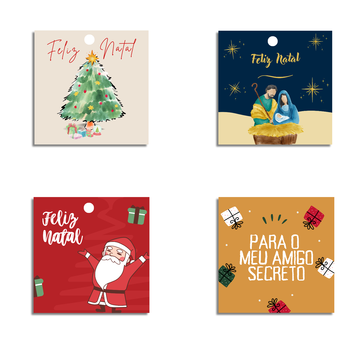 Formato e Design: As tags possuem um formato quadrado, ideal para serem penduradas em qualquer tipo de presente. Cada tag conta com um furo reforçado para passar uma fita de sua escolha, facilitando a personalização e a aplicação.